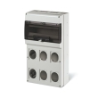 Scame Domino e гама от индустриални табла изработени от висококачествена удароустойчива термопластмаса, с горна камера за монтаж на DIN модули и възможност за монтаж на различен брой промишлени и шуко контакти според модела. Входовете за кабели са PG и метрични.