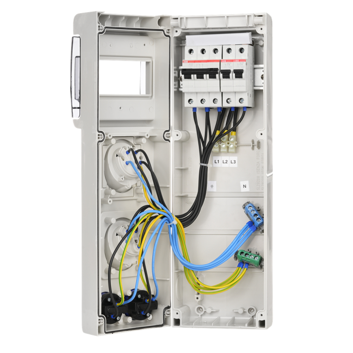 Scame Domo e гама от индустриални табла изработени от висококачествена удароустойчива термопластмаса, с горна камера за монтаж на DIN модули и възможност за монтаж на различен брой промишлени и шуко контакти според модела.