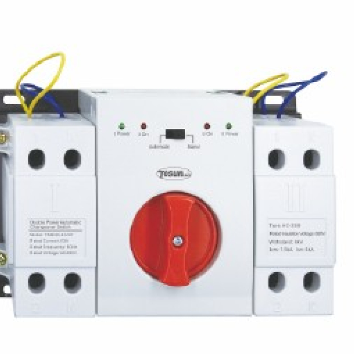 Автоматичният превключвател с двойно захранване TSMQ6 е подходящ за двуконтурна захранваща система с клемни връзки и честота 50Hz/60Hz, номинално работно напрежение 220V (2P), номинален ток 10A~63A.