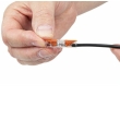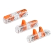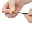 Безвинтова двойна клема тип бърза връзка Wago за гъвкави или твърди проводници. Лесна за употреба - вдига се лостчето, проводникът се защипва и лостчето се затваря за безопасна и здрава връзка. Серията се предлага за 2, 3 или 5 проводника.