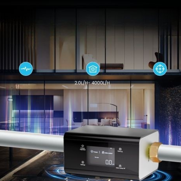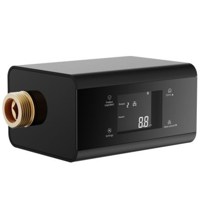 Аларма и автоматично затваряне на клапана: При откриване на теч на вода от водопровода, устройството незабавно задейства аларма и автоматично затваря клапана, предотвратявайки по-нататъшни щети и разхищение на вода.
