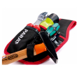 Чантата е изработена от здрави найлонови нишки и е в черен цвят с червен контур.
