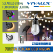 Соларната LED верига FIESTA предлага светлинни ефекти в цвят RGB или в бяла светлина, а режимите й на работа се избират от контролния панел на гърба на соларния панел или чрез дистанционното в комплекта. Всяка от 10-те лампи е снабдена с кукичка за окачване и така веригата представлява универсално светлинно решение за монтаж по фасади, в клоните на дървета или храсти, както и по перилата на стълбища или тераси.